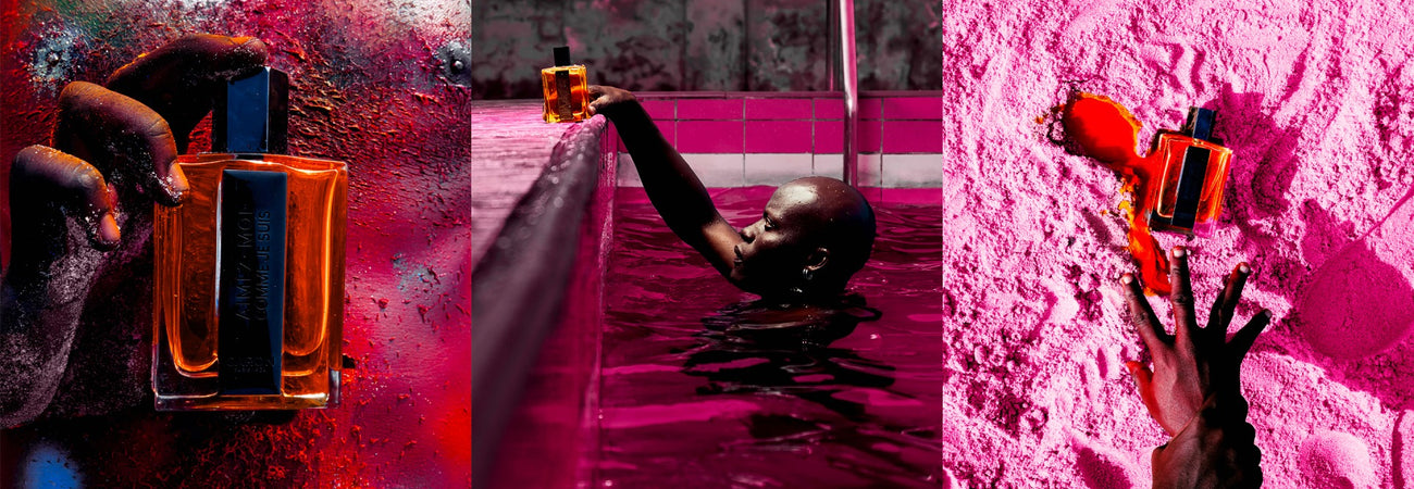 For the AIMEZ-MOI COMME JE SUIS advertising campaign, we gave free reign to Prince Gyasi chosen for his original, singular, authentic approach. He expresses his interpretation of the fragrance in his piece commissioned for the occasion, sharing his personal takes on the complexity, creativity, and bold spirit of a man.