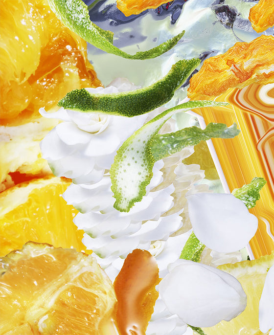 A fruit-laden garden, bursting with citrus and pure energy. A symphony of refreshing notes, unfurling zest by zest. The tangy brightness of lemon and orange, the fruity bitterness of grapefruit, the more floral bite of bergamot. Tender rinds release their lively spirit in joyful bursts.